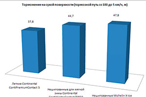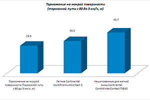 Помните также о недопустимости использования зимних шин летом. Зимние шины, особенно липучки скандинавского типа, имеют очень мягкую резину, которая ведет себя как кусок сливочного масла на горячем асфальте в знойную погоду. Плюс так необходимые зимой ламели, которые встают веером при резком торможении, уменьшая площадь соприкосновения с покрытием дороги.  Задумайтесь о том, что «добивая» или «докатывая» зимние шины летом ваш тормозной путь в экстренных условиях может оказаться в 1.5 раза выше. То есть при резкой остановке даже с безопасных 50 км/ч машина пройдет не 10–12, а 15–18 метров, а на влажной дороге эти цифры будут еще выше. А при двукратном увеличении скорости разница между летней и зимней покрышкой даже на сухом покрытии может дойти до 20–25 метров! Вы только задумайтесь — 20 лишних метров тормозного пути! Это ведь длина 4 впереди стоящих автомобилей!